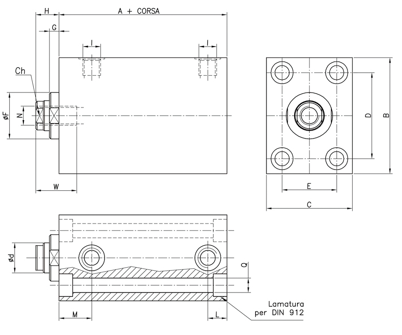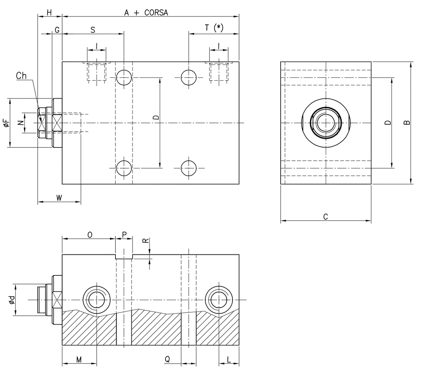 - T(*) Corsa 20 mm senza fori;