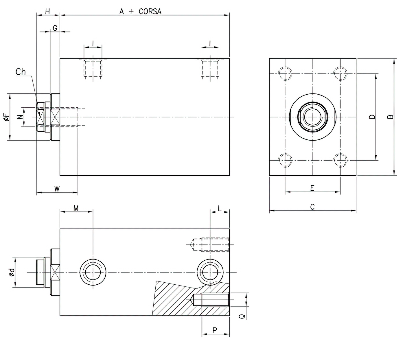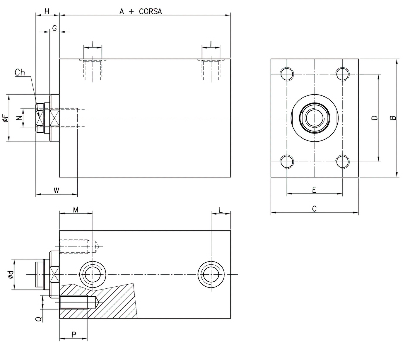 | 25 | 18 | 57 | 65 | 45 | 14 | 50 | 30 | 30 | 6.5 | 14 | G1/4" | 12 | 22 | M10 | 16 | M8 | 24 |