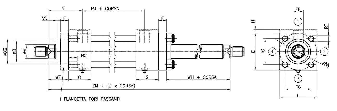 - Serie MD: cilindro oleodinamico a tiranti magnetico da Ø25 a Ø100;